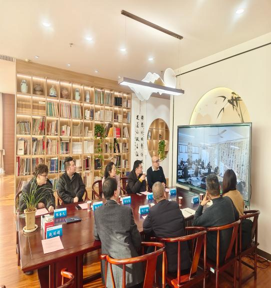 随后,双方在会议室举行了深入的交流座谈会。会上,双方围绕甘肃丰富的书法文化资源、书法学术研究、书法教育与传承、实践教学基地建设等议题展开了热烈讨论。兰州城市学院甘肃张芝书法院院长米文佐首先对学校的整体发展情况、书法学术研究情况及未来规划进行了全面介绍,他表示近年来取得了显著成果,但在书法专业科研人员等方面仍存在一定需求。书法学院常务副院长侯东菊介绍了书法学院的学科建设、人才培养、师资力量等基本情况,并重点阐述了学院在书法专业人才培养方面的特色与优势,她表示此次座谈交流及访企拓岗活动旨在搭建两校之间沟通的桥梁,建立长期稳定的实习就业基地。