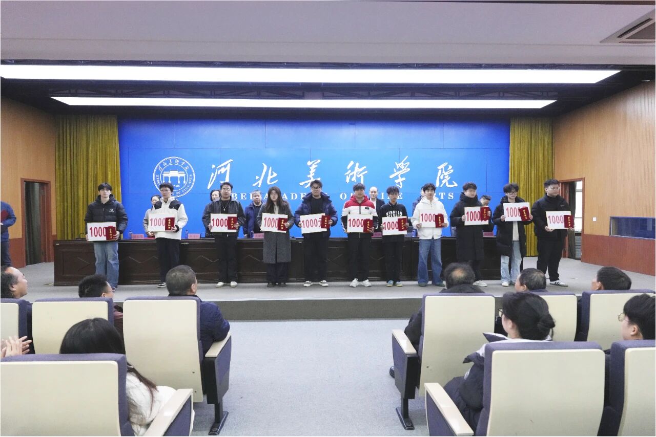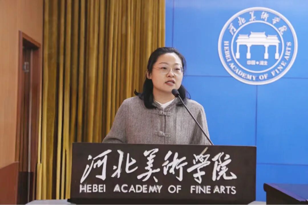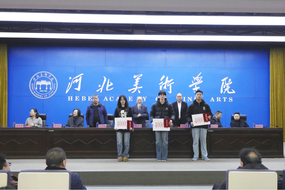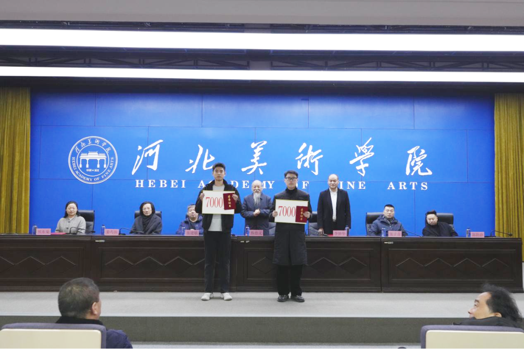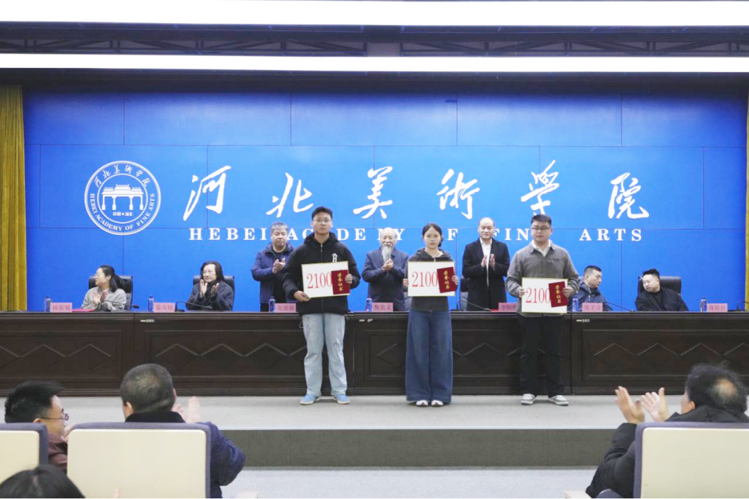 河北美术学院书法学院常务副院长侯东菊宣读了《书法学院关于表彰第五届“心吾斋”奖学金获得者的决定》。本届“心吾斋”奖学金评选以专业创作成果为核心标准,经严格评审,共表彰在国家级、省级重要展赛中取得突出成绩的19名优秀学子。