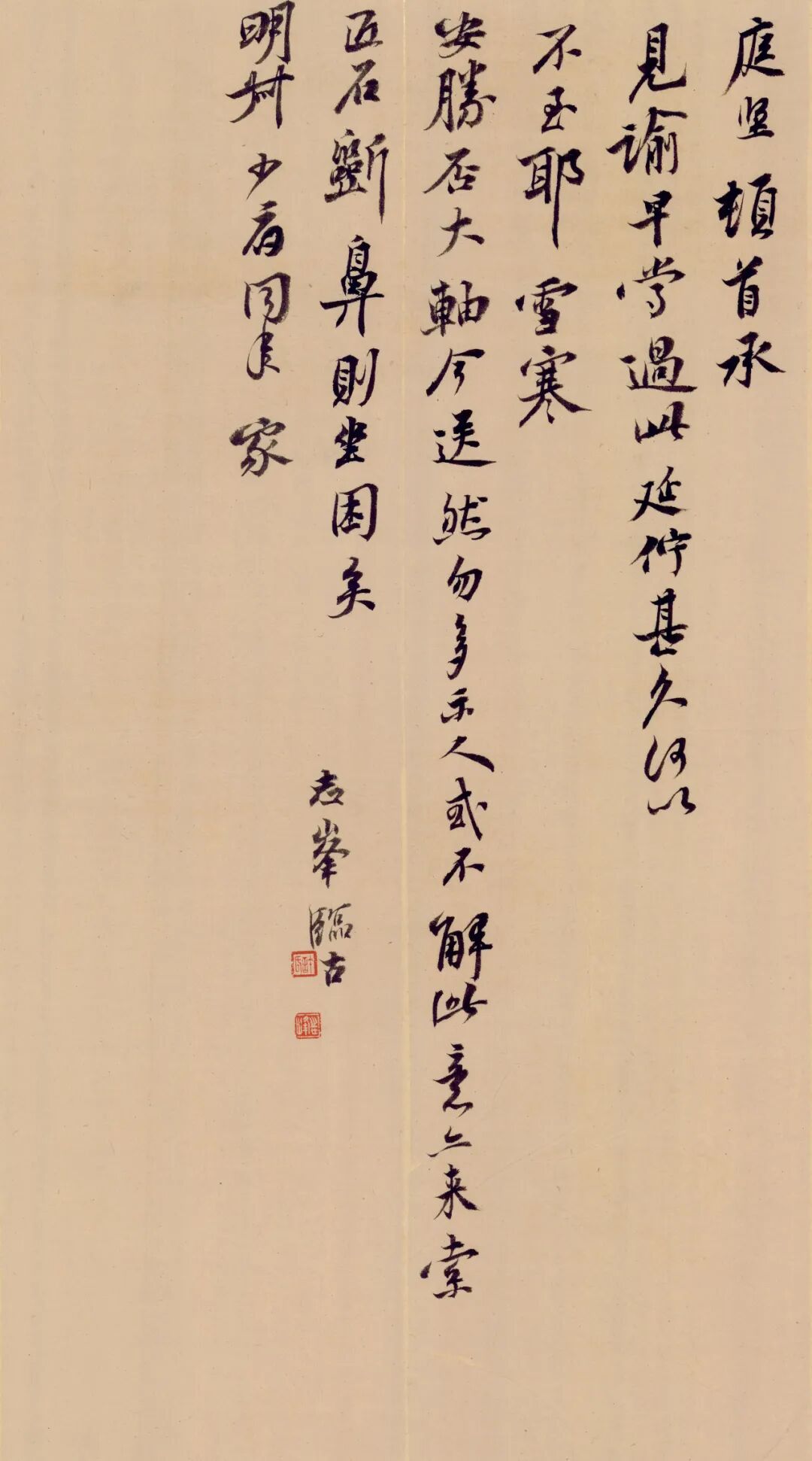 诗文字画不成家数,便是枉费精神。然成家尚不从文字画起,要从做人起。自身心言动,本末始终,自家打定主意。做了什么人?真积力久,自然成就,或大成,或小成,为儒为侠,为知、为峭、为淡、为绚烂、为法、为拉沓、为娟净、为纵姿,做成路数,然后用功于文字,渐渐搬移。其艺必成,适肖其人。鲁公书似其忠烈,间出萧淡又似其好神仙,东坡画诗文,皆汪洋出奇,想见其人,豪宕闲远可喜也。心生心画,无可矫为。(何绍基《题冯鲁川小像册论诗》)