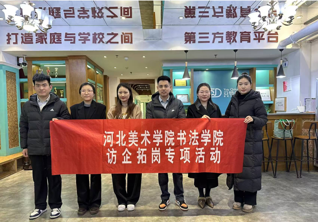 为深入贯彻党中央、国务院及学校党委关于高校毕业生就业工作的决策部署,加快落实“访企拓岗”专项行动要求,拓宽毕业生就业创业渠道,提升人才培养与市场需求的契合度,2025年12月26日,书法学院三系副主任葛稳博、专任课老师宋世超、辅导员老师秦媛、崔雪瑶、李帼慧一行,前往石家庄市朗琪培训学校开展访企拓岗专项交流活动。