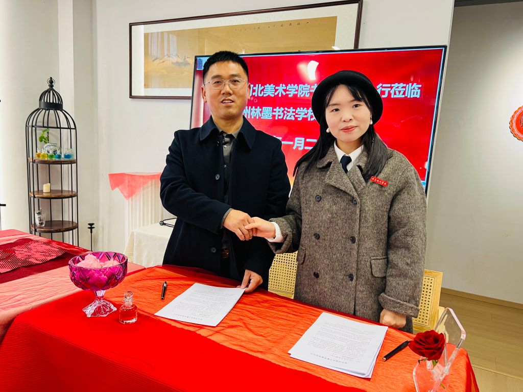 座谈交流中,双方就毕业生就业安置、实习实践基地建设等核心议题达成一致意见。值得一提的是,目前林墨培训有限公司已有6名书法学院同学在岗实习,同学们凭借扎实的专业功底和积极的工作态度获得了企业的认可,这也为此次深化合作奠定了良好基础。在此基础上,林墨培训有限公司明确为书法学院2026届毕业生再提供8个优质就业岗位,涵盖书法教学、课程研发、学员管理、赛事组织等贴合企业业务的核心领域,为毕业生搭建起从校园实习到职场就业的顺畅通道。同时,双方正式签订实践实习基地合作协议,企业将为学院学生提供更稳定的实习岗位、系统的教学实操指导及丰富的赛事实践平台,学院则为企业定向输送高素质书法专业人才,共同探索“高校育才、企业用才”的育人模式,助力书法教育行业提质升级。